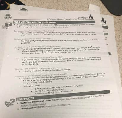 “‘We are owning the 6-7 moment.’ I do not get paid enough to spend a day suggestively selling a $0.67 Frosty,” the worker who posted the document writes.