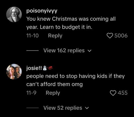However, another viewer pushed back: “This type of comment screams I grew up with privilege – You don’t need to spend lot of money on Christmas to have a good Christmas 🎄.”