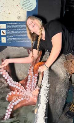 Commenters on her video raised concerns not just for the child but also for the octopus, questioning how healthy it is for a large, intelligent sea creature to be touched by dozens of strangers.