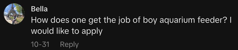 “How does one get the job of boy aquarium feeder? I would like to apply.”