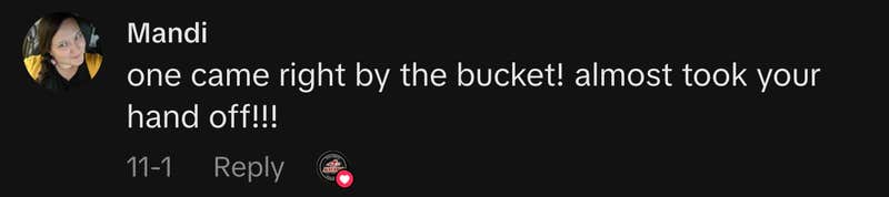 “one came right by the bucket! almost took your hand off!!!”